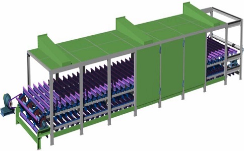 輪對(duì)涂漆、烘干設(shè)備應(yīng)采用模塊化、通用化、可擴(kuò)展的設(shè)計(jì)理念進(jìn)行設(shè)計(jì),可以滿足各型輪對(duì)噴涂的要求。地面基礎(chǔ)設(shè)計(jì)時(shí)考慮米軌、準(zhǔn)軌、寬軌軌距,以滿足不同軌距輪對(duì)進(jìn)出噴漆室、烘干室。噴漆室采用干式漆霧處理方式,并配置轉(zhuǎn)輪器,能夠使輪對(duì)勻速旋轉(zhuǎn)。以方便噴涂、保證涂裝質(zhì)量。