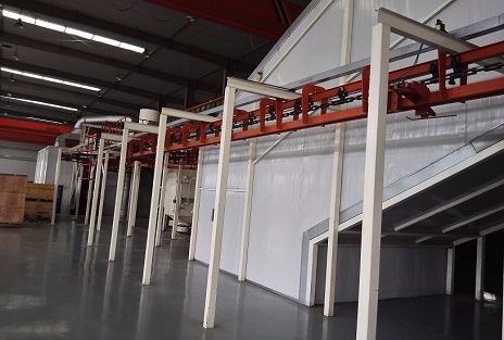 依據(jù)某軌道交通設(shè)備有限公司提供的噴粉線及烘干技術(shù)要求,并在與用戶交流的基礎(chǔ)上,作如下設(shè)計(jì)方案:1.工件名稱:機(jī)車部件結(jié)構(gòu)件 2.最大工件尺寸: 2300×800×800mm 3.工件最大重量:30kg 4.工作制度:260天/年,8小時(shí)/天,單班生產(chǎn);
