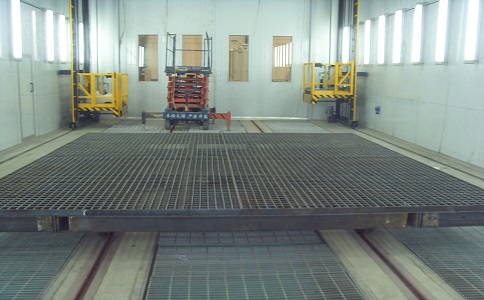 ? 以氣流方向劃分為三類。 大件線噴漆室 橫流式噴漆房: 氣流從房的一端流向另一端。此種機型成本低,易安裝。缺點是霧狀物沿著車身側面移動,且霧氣不能從操作者的面部周圍除去,工作環(huán)境不盡人意。