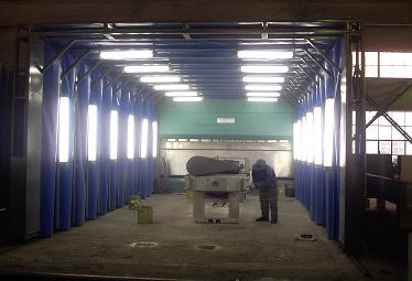 | 供漆室 送風(fēng)系統(tǒng)綱結(jié)構(gòu)平臺下方安裝一個5.5m×2m×3m(L×W×H)的供漆室。配有排氣扇,排氣量不小于10次/分,采用防爆型排氣扇和照明燈。供漆室內(nèi)埋設(shè)地線,預(yù)防靜電引發(fā)火災(zāi);為便于噴漆作業(yè),在噴漆室的兩側(cè),每側(cè)設(shè)壓縮空氣快速接頭 |