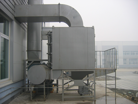 濾筒式除塵器的結(jié)構(gòu)是由進(jìn)風(fēng)管、排風(fēng)管、箱體、灰斗、清灰裝置、導(dǎo)流裝置、氣流分流分布板、濾筒及電控裝置組成。